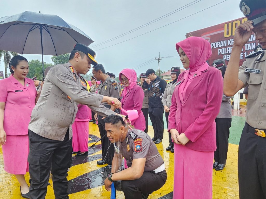 Mandi Kembang Warnai Upacara Kenaikan Pangkat 35 Anggota Polresta Tanjungpinang