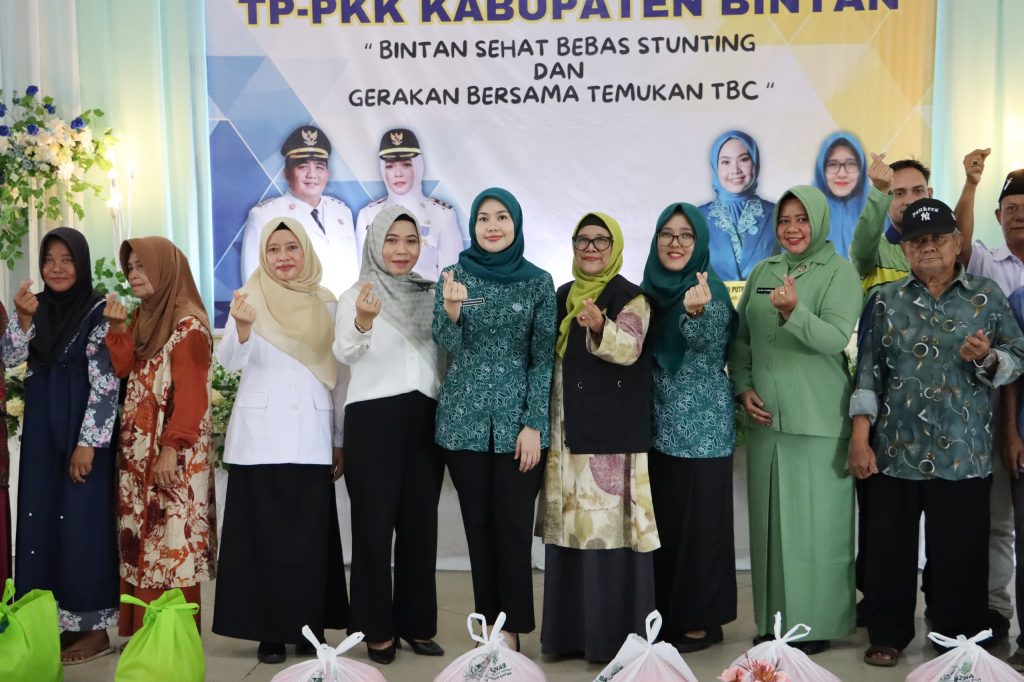 Ketua TP PKK Kabupaten Bintan, Hafizha Rahmadhani foto bersama usai Sosialisasi Bintan Sehat Bebas Stunting dan Gerakan Bersama Temukan TBC di Gedung Nasional Tanjung Uban, Rabu (8/10).