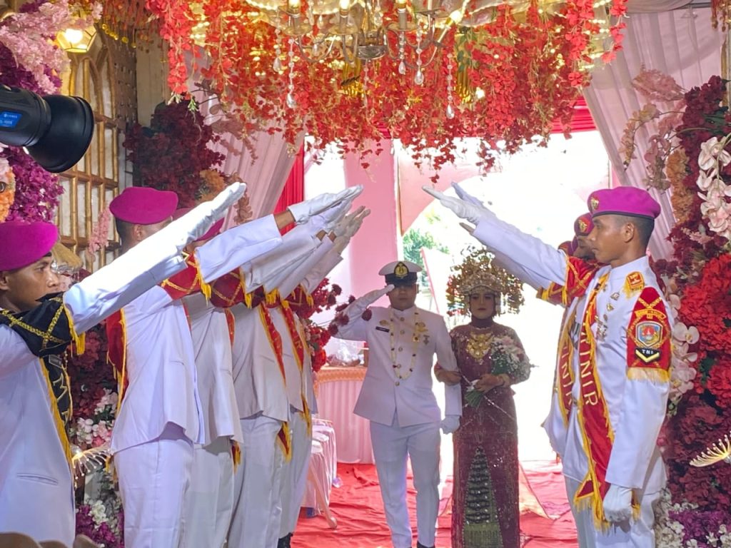 LINGGA, (kepriraya.com)- Dalam rangka menjaga dan melestarikan tradisi kehormatan khas TNI Angkatan Laut, Komandan Puslatpurmar 9 Dabo Singkep, Letkol Marinir Ricky Sandro, M.Tr.Opsla, bertindak sebagai Inspektur Upacara pada Upacara Tradisi Hasta Pora pernikahan Sertu Marinir Chandika Saftiawan dengan Merdha Diozan Fortuna, S.A.N di Kelurahan Bandar Jaya, Kecamatan Terbanggi Besar, Kabupaten Lampung Tengah.