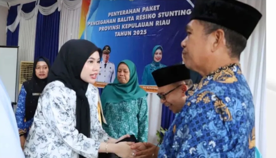 BINTAN, (kepriraya.com)— Ketua TP PKK Kabupaten Bintan Hafizha Rahmadhani memberikan apresiasi kepada Pemerintah Provinsi Kepulauan Riau (Pemprov Kepri) atas dukungannya dalam memperkuat upaya pencegahan stunting di daerah. Ucapan itu disampaikan Hafizha usai mendampingi Ketua TP PKK Kepri Dewi Kumalasari Ansar menyerahkan Paket Pencegahan Balita Risiko Stunting di Aula Kantor Kecamatan Gunung Kijang, Jumat (17/10).
