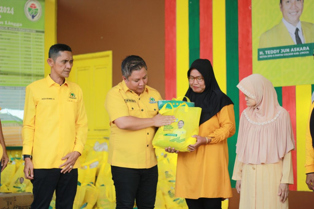 Ketua DPD Golkar Lingga, Teddy Jun Askara, didampingi para pengurus dan anggota DPRD Kabupaten Lingga membagikan 1.000 paket sembako kepada masyarakat. Senin (20/10)
