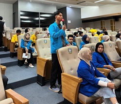 Salah seorang peserta memberikan pertanyaan kepada narasumber