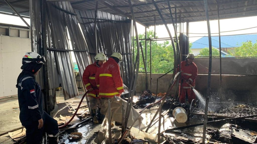 Kebakaran Ruko Mie Aceh Jumbo di Teluk Lobam, Petugas Gabungan Bergerak Cepat Padamkan Api