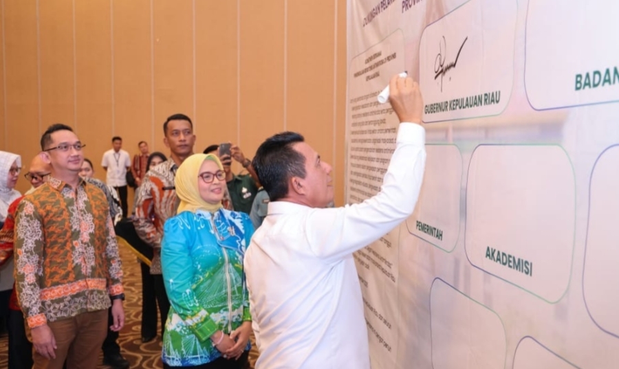 Gubernur Ansar Ahmad menandatangani komitmen pengendalian penggunaan antibiotik. di Aula Wan Seri Beni, Dompak, Tanjungpinang, Kamis (20/11/2025) F-Enji