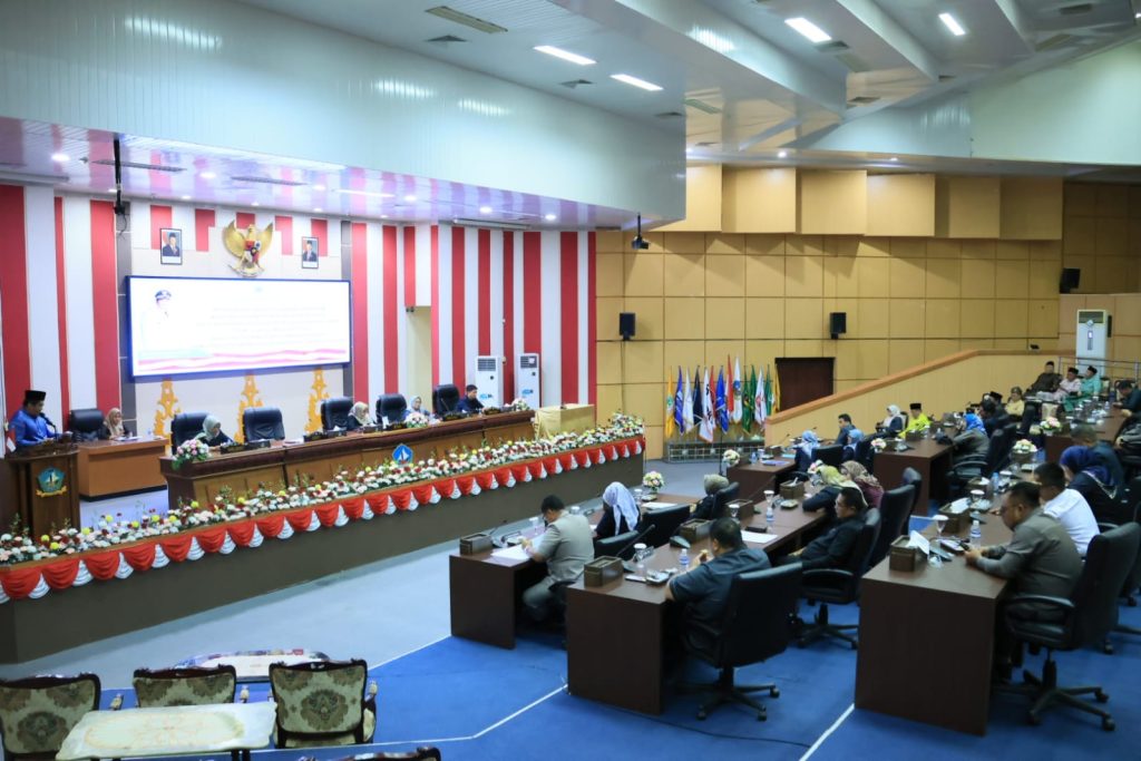 Rapat Paripurna penyampaian dua Ranperda strategis, yakni Ranperda APBD Tahun Anggaran 2026 serta Ranperda Perusahaan Perseroan Daerah (Perseroda) Bintan Karya Bahari, Senin (24/11) di Ruang Sidang Paripurna DPRD Bintan.