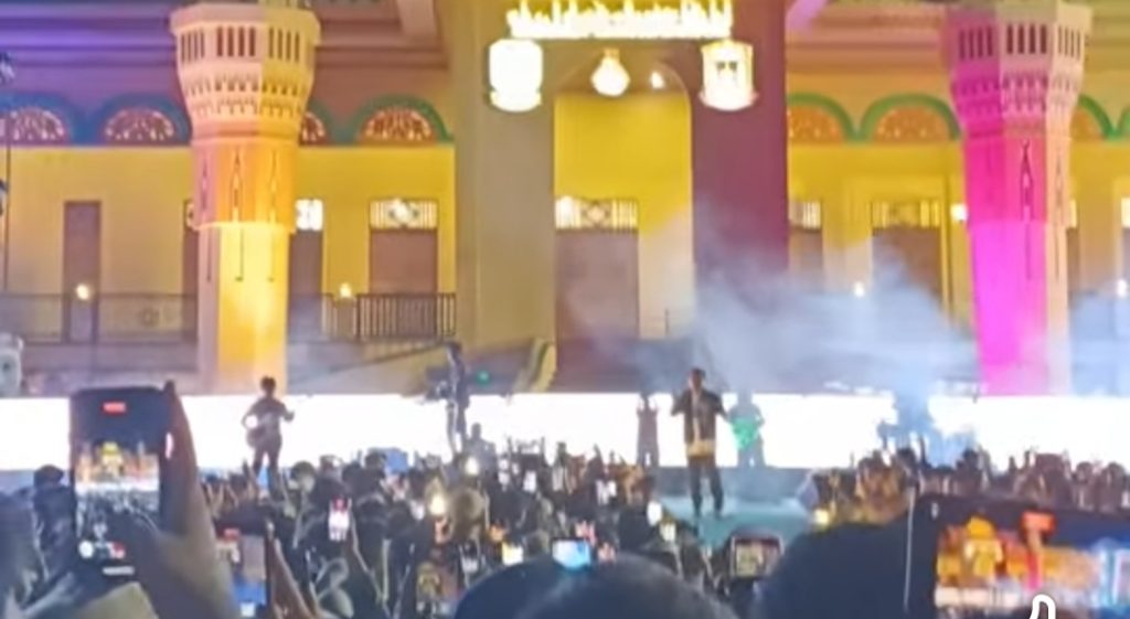 Wali menghidupkan panggung dengan deretan lagu hits bernuansa religi dan Melayu, menciptakan gelombang euforia yang langsung menyentuh penonton dari berbagai usia. Sejak lagu pertama dilantunkan, gemuruh sorak warga langsung memenuhi udara, menandai antusiasme besar masyarakat terhadap kehadiran band asal Jakarta tersebut.