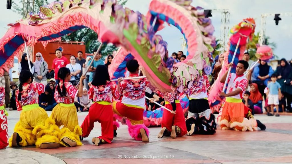 TANJUNGPINANG, (kepriraya.com)– Suasana Taman Gurindam 12 berubah semarak pada Sabtu (29/11) ketika Paguyuban TNJ Hongteng Tanjungpinang menghadirkan aksi spektakuler Liong Naga dan Barongsai dalam rangkaian Kepri International Art and Culture 2025. Ratusan masyarakat dari berbagai penjuru Tanjungpinang tampak memadati lokasi sejak sore, menanti atraksi budaya Tionghoa yang selalu dinanti setiap tahunnya.