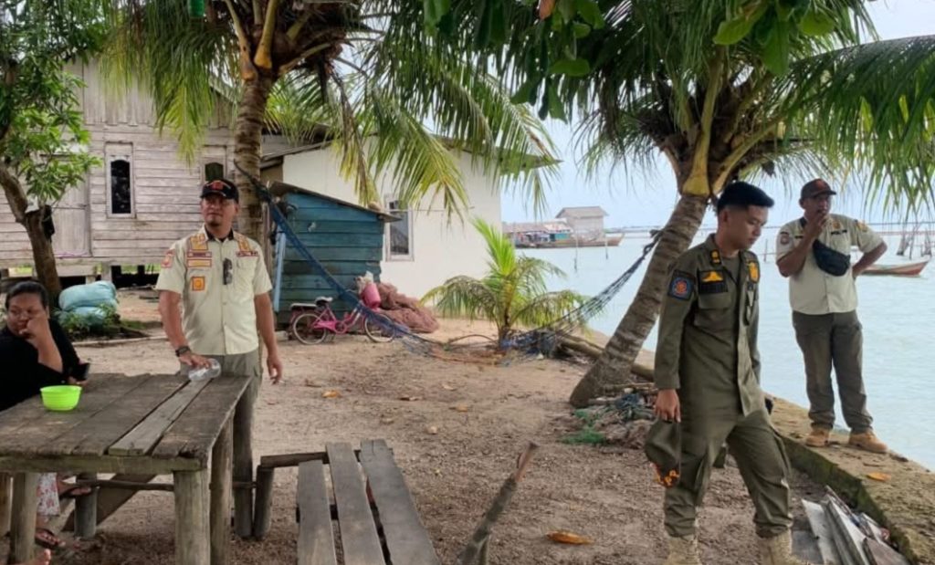 Satuan Polisi Pamong Praja dan Pemadam Kebakaran Kabupaten Lingga melakukan pengawasan langsung di wilayah terdampak banjir rob di Dabo Lama, Kecamatan Singkep, Rabu (10/12/2025). f-Ist