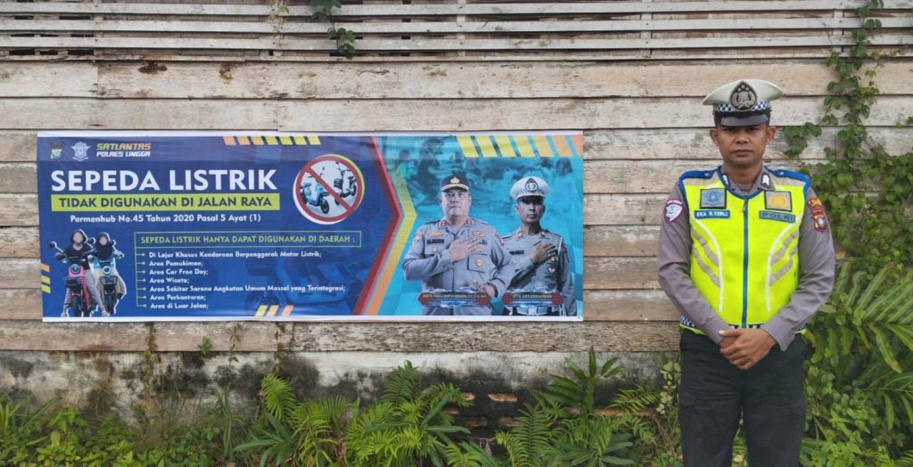 Satlantas Polres Lingga Pasang Spanduk Larangan Sepeda Listrik di Jalan Raya