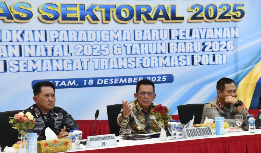 BATAM, (kepriraya.com)– Gubernur Kepulauan Riau Ansar Ahmad menegaskan pentingnya peningkatan kualitas pengamanan dan pelayanan publik selama perayaan Natal 2025 dan Tahun Baru 2026 (Nataru) di wilayah Kepulauan Riau. Penegasan tersebut disampaikan saat memimpin Rapat Koordinasi Lintas Sektoral Operasi Lilin Seligi 2025 di Gedung Lancang Kuning Polda Kepri, Batam, Rabu (18/12/2025).
