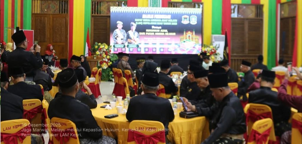 TANJUNGPINANG, (kepriraya.com)– Komitmen menjaga marwah dan jati diri Melayu terus diperkuat melalui sinergi lintas lembaga. Kantor Wilayah Kementerian Hukum Kepulauan Riau (Kemenkum Kepri) menghadiri pembukaan Rapat Kerja Lembaga Adat Melayu (LAM) Kepulauan Riau Tahun 2025, Jumat (19/12/2025).