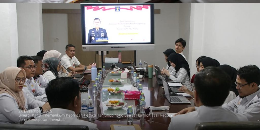 TANJUNGPINANG, (kepriraya.com,) – Upaya mempercepat arus investasi di Kota Tanjungpinang terus dimatangkan. Kantor Wilayah Kementerian Hukum Kepulauan Riau bersama Pemerintah Kota Tanjungpinang memperkuat kolaborasi melalui Rapat Harmonisasi Rancangan Peraturan Wali Kota tentang Rencana Detail Tata Ruang (RDTR), Rabu (24/12/2025).