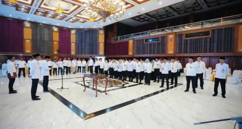 Sebanyak 146 orang pejabat struktural dan fungsional mengambil sumpah jabatan, terdiri dari 40 orang pejabat eselon II, 49 orang pejabat eselon III, 55 orang pejabat eselon IV dan 2 orang pejabat fungsional.