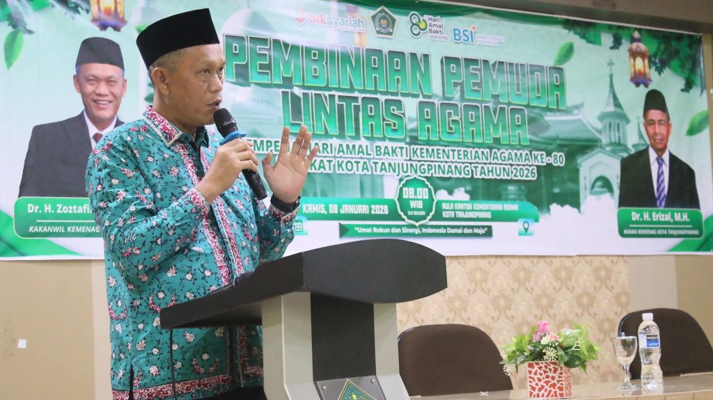 Hal tersebut disampaikannya saat membuka kegiatan Pembinaan Pemuda Lintas Agama yang digelar di Aula Kantor Kementerian Agama Kota Tanjungpinang, Kamis (8/1/2026).