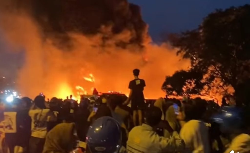 Besarnya kobaran api membuat arus lalu lintas di Jalan Brigjen Katamso sempat lumpuh total. Sejumlah pengendara terpaksa menghentikan perjalanan, sementara warga berupaya menjauh dari lokasi untuk menghindari dampak kebakaran.