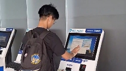 Salah seorang penumpang kapal saat menggunakan E-Ticketing Kapal Penumpang Sesuai Standar Nasional di Pelabuhan SBP Tanjungpinang. Selasa, (20/1) F- asf