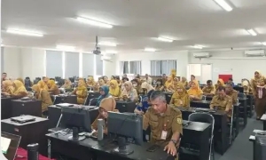 Kegiatan yang berlangsung di Ruang CAT Lantai 5 Kantor BKPSDM tersebut diikuti oleh seluruh kepala sub bagian umum dan kepegawaian serta pengelola kepegawaian pada masing-masing perangkat daerah.