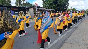 Sepanjang rute, peserta tampil memukau dengan aneka kostum dan cosplay kreatif bernuansa Islami yang menarik perhatian masyarakat.