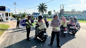 Aksi sosial tersebut disambut antusias warga dan pengguna jalan. Selain berbagi takjil, personel Satlantas juga menyampaikan imbauan agar tetap tertib berlalu lintas demi keselamatan bersama selama Ramadan.
