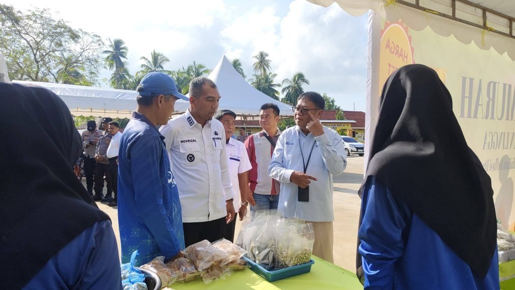 Wakil Bupati Lingga, Ir. H. Novrizal, dan Kepala Perwakilan BI Kepri ketika menghadiri pasar sembako murah sebagai upaya menjaga stabilitas harga dan membantu masyarakat mendapatkan kebutuhan pokok dengan harga terjangkau, Rabu (1/4/2026). F-Ist