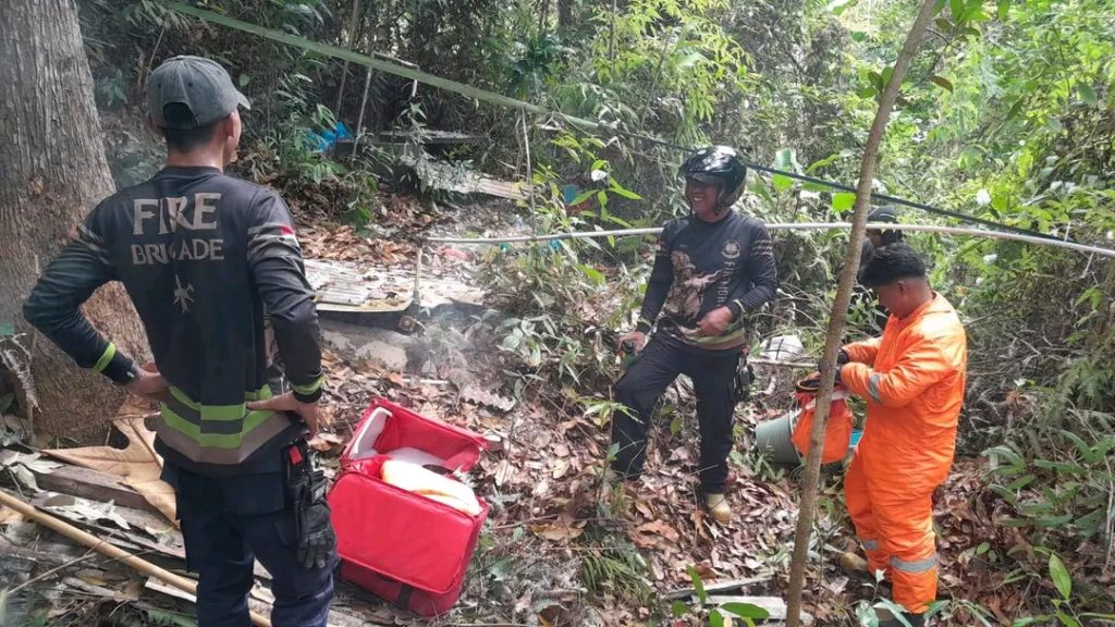 Petugas Damkar ketika melakukan eksekusi sarang lebah di area sumur milik warga Perum Lobam Bestari, Kecamatan Seri Kuala Lobam, pada Jumat (3/4/2026). f-Damkar