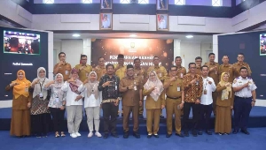 Wali Kota Tanjungpinang, Lis Darmansyah, foto bersama usai menghadiri kegiatan penyampaian arahan Menteri Lingkungan Hidup terkait Pengelolaan Sampah Nasional Tahun 2026 yang digelar di Aula Sultan Sulaiman Badrul Alamsyah, Kantor Wali Kota Tanjungpinang, Selasa (7/4/2026