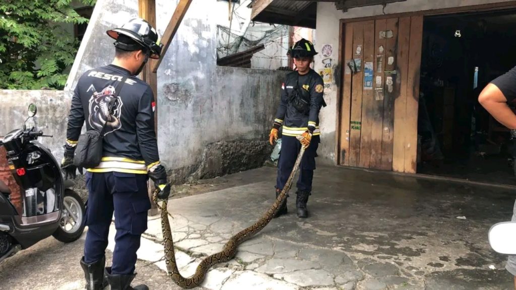 “Saya kaget saat masuk ke gudang, tiba-tiba melihat ular besar sudah berada di dalam. Langsung saya hubungi petugas Damkar,” ujarnya.