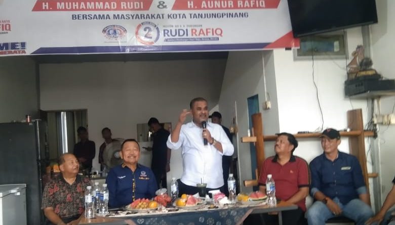 calon wakil M Rudi nomor urut 2 pada pilkada Kepri tahun 2024 didepan masyarakat relawan jaringan Rudi-Rafiq di Jalan Merpati