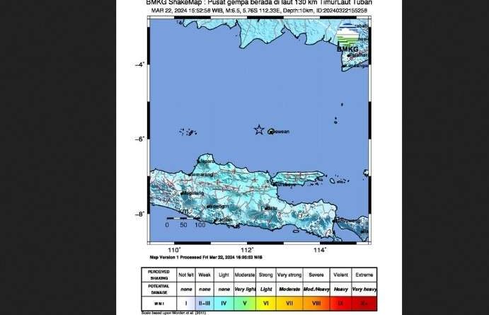 Read MoreJAKARTA (Kepriraya.com) – Gempa mengguncang laut Jawa pada Jumat (22/3/2024) pukul 11.22 WIB gempa bumi berkekuatan 6 magnitudo dengan kedalaman 10 kilometer.