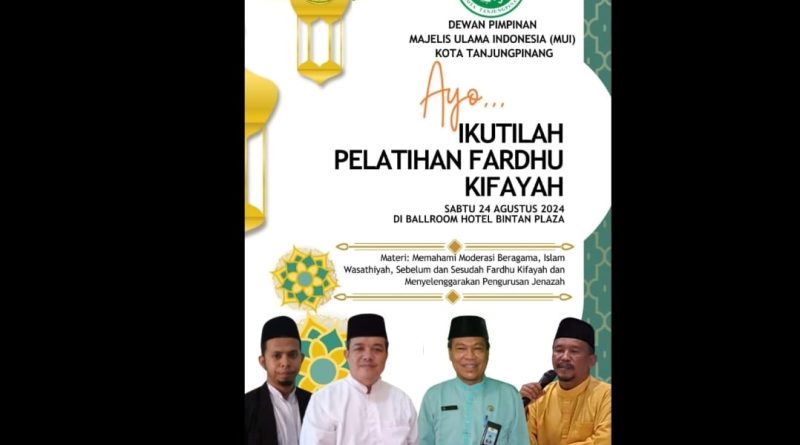 Read MoreTANJUNGPINANG (kepriraya.com)- Majelis Ulama Kota Tanjungpinang akan mengadakan kegiatan pelatihan pengurusan jenazah (Fardhu Kifayah) di ballroom Hotel BIntan Plasa, Sabtu