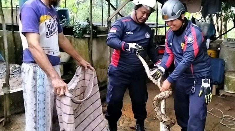 Read MorePetugas Damkar ketika mengevaluasi se ekor ular sawa (Malayopython reticulatus) dengan panjang sekitar 3 meter di Tanjung Uban pada Jumat
