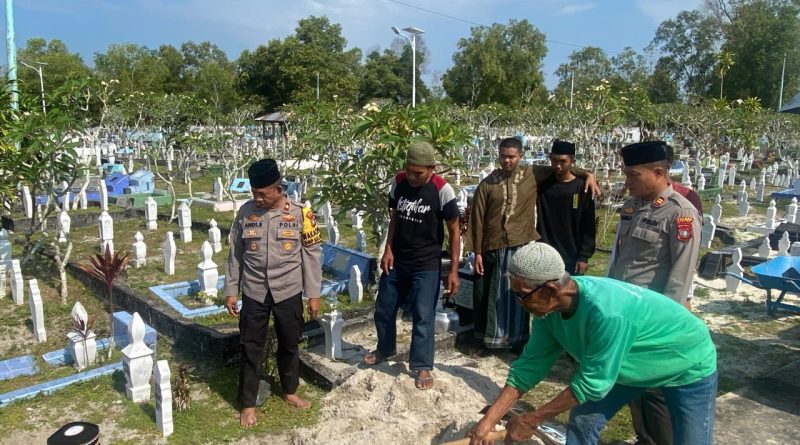 Waka Polres Lingga ikut langsung membantu proses pemakaman jenazah warga Almarhumah Ibu. Zainiah Binti Raus Marasip yang beralamat di Jl.