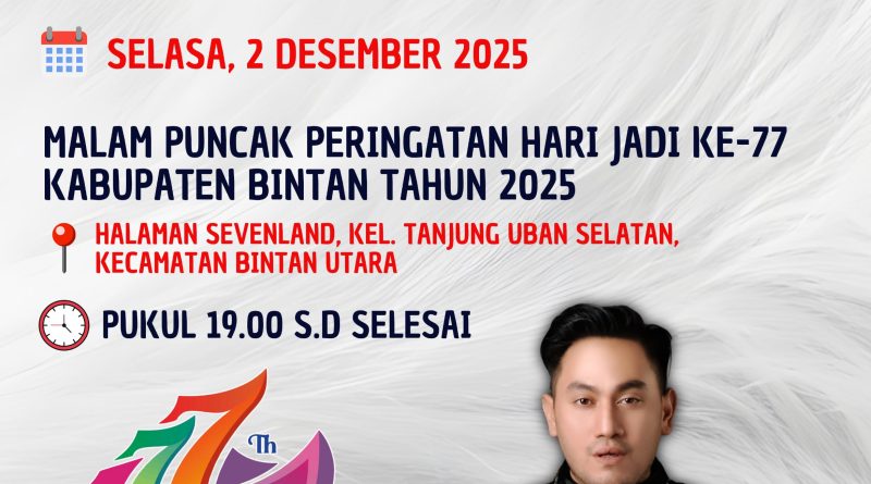 Read MoreBINTAN, (kepriraya.com)- Peringatan Hari Jadi ke-77 Kabupaten Bintan telah memasuki persiapan final. Beberapa rangkaian kegiatan menarik siap digelar untuk menyemarakkan